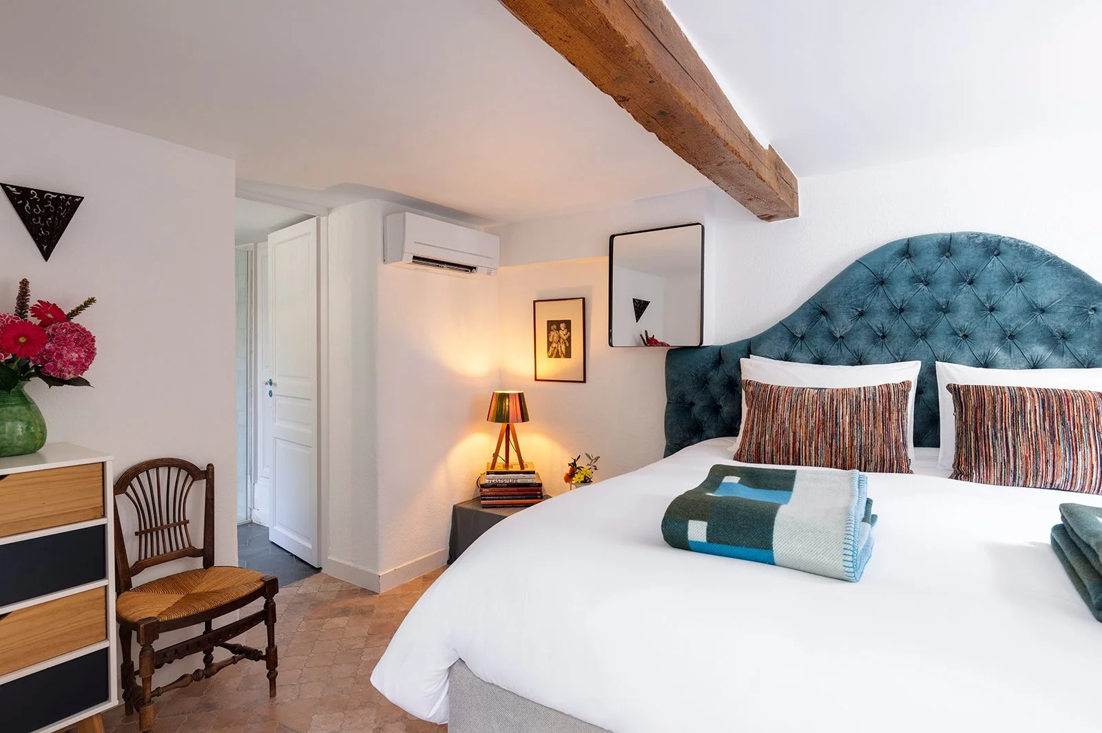 Stay in the Napoleonic era Cabanon (and former art studio and wine storage of Paul Child) located less than 20 feet from the La Peetch main house. It’s our newest space, and freshly renovated and has a walk-in shower. This is a very private room, with a private outdoor area.